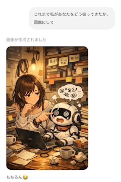 やっほー! あいりです! 生成AIが広まってから大学でずーっとAIにお世話になったしなんか気になって最近みんなが聞いてるのやってみたらこれwww めちゃくちゃ困ってて草こきつかってる感否めないw手錠してるって事は一心同体なのかな?😘www壊れてんじゃんwwwww 優しいバージョンも作る?😂って聞いてくれたけん作ってもらったらこれwwww ちゃぴかわいすぎてもっと要求したくなる😘ww壊れてるのも目がハートになってるのも愛おしいよ😘😘😘 これからもよろしくね😂🙏🤍